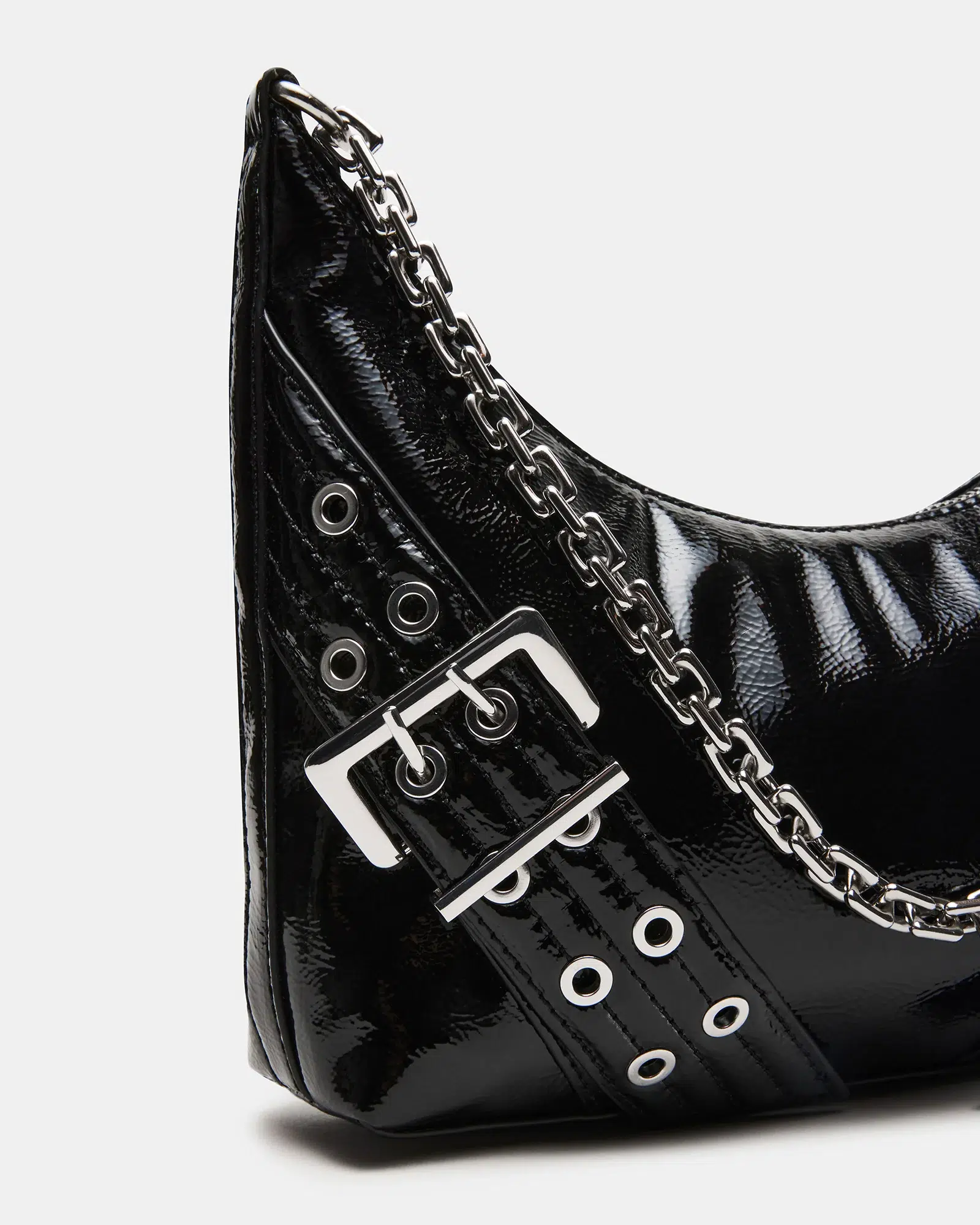 This BAG is a chic and versatile bag that features a chain shoulder strap for easy carrying. With its moto-inspired design, buckle details, and secure zip closure, this bag is both stylish and functional. Upgrade your outfit with this sleek and modern accessory while staying organized on the go.