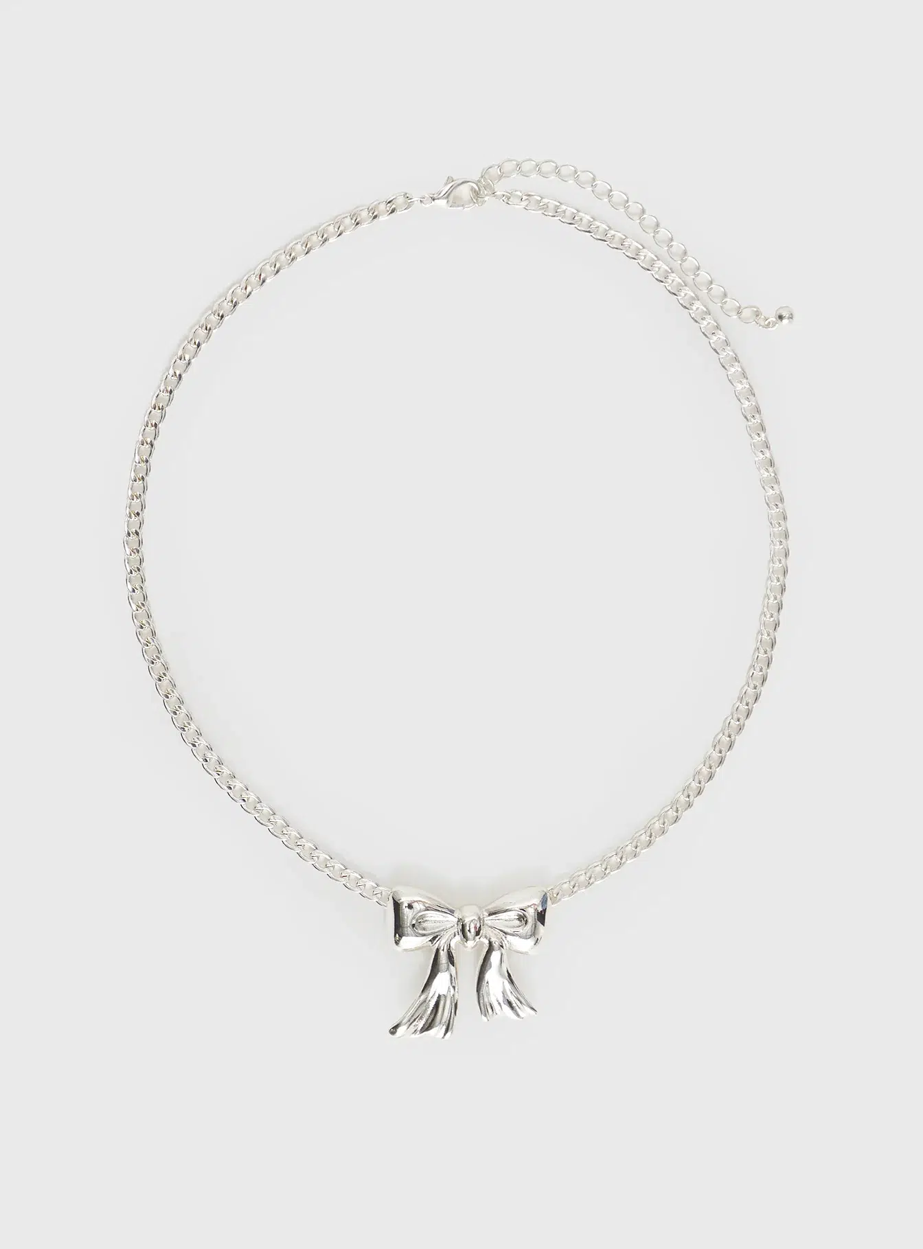 • Silver-toned, bow pendant, lobster clasp fastening
